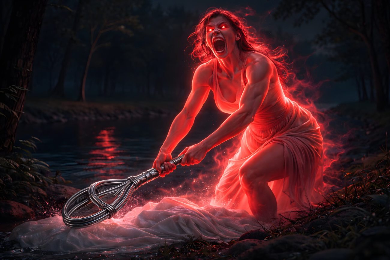 At night, she was said to fly like a bird over the pond, crying out with a hoarse, croaking voice. Around the pond, other witches gathered, and in the moonlight they danced wildly in the trees, making music and raising a dreadful noise. They were also seen hovering around the Pirmesberg, reveling in the forest and floating through the air.