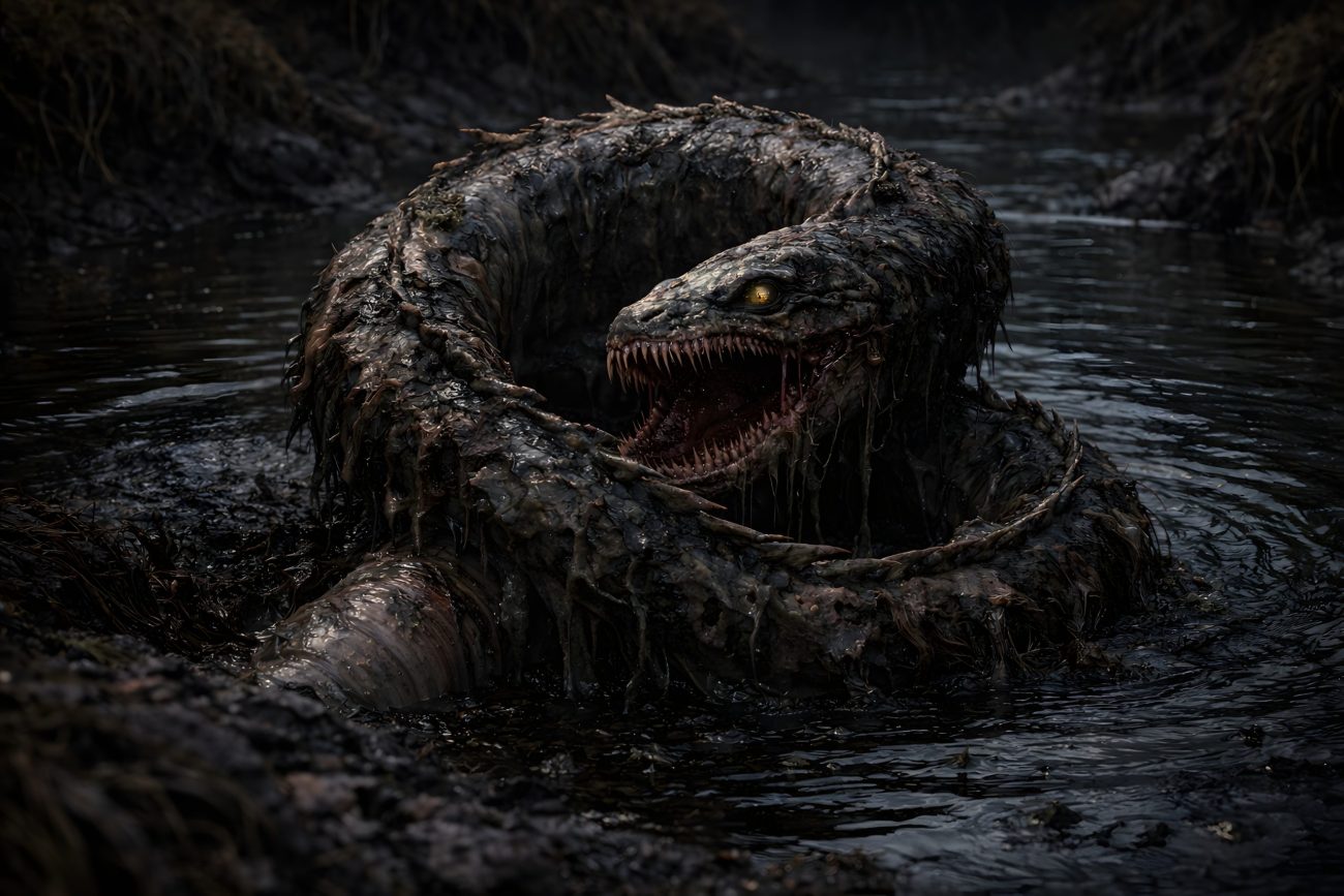 Long ago, a malicious wizard in Iceland defied the natural order. From polluted water he drew up a dead eel, half-rotted and foul, and by dark arts forced it back into motion. Thus was born the first Hrökkáll, the coil-eel—an unnatural thing animated by corruption and spite.