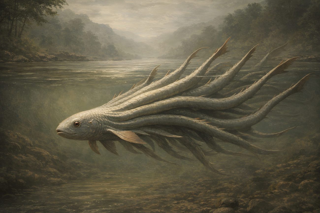 Stories of the reverse-fin trout are known throughout Iceland, and certain lakes and pools bear names that warn of its presence. These places are remembered as cursed waters, where the öfuguggi once swam—or may still swim—waiting in the dark below.