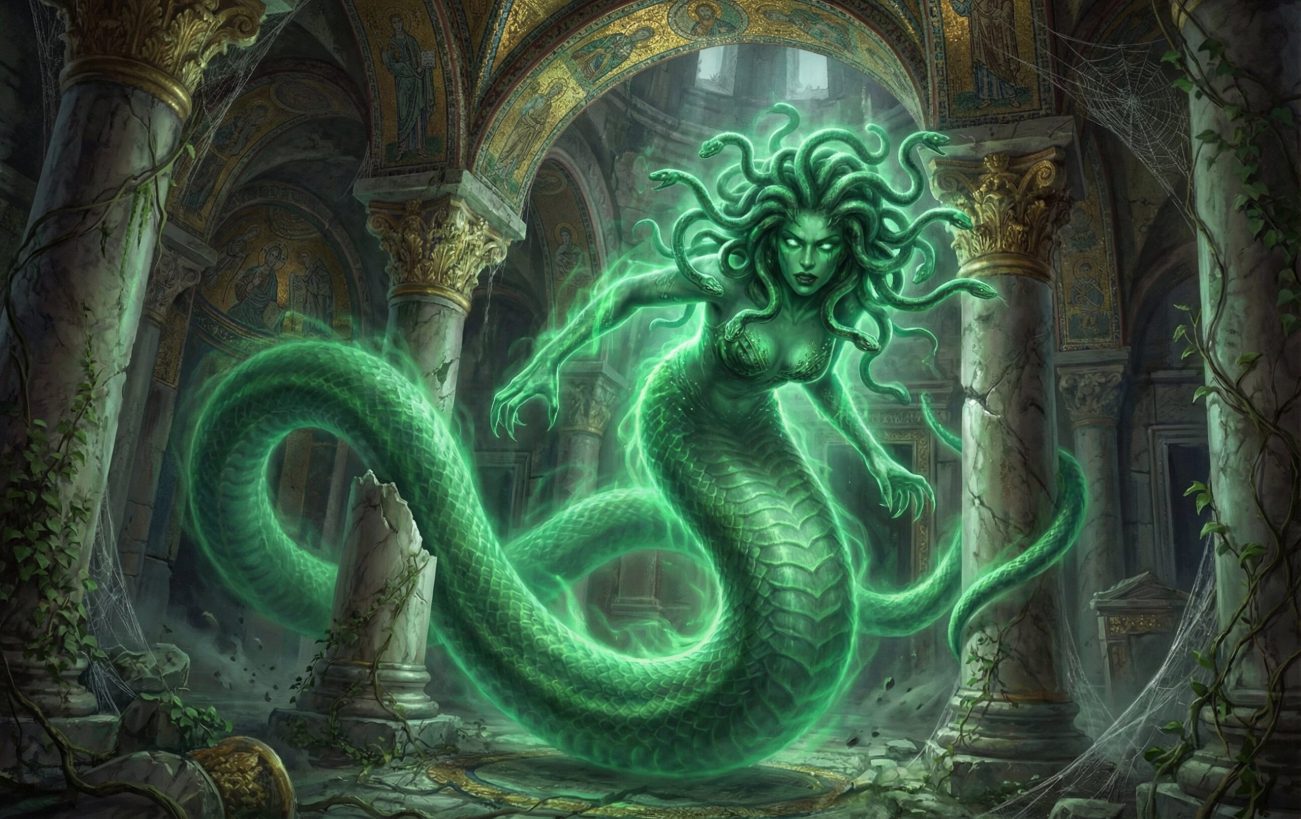 Near the village of Omutnitsy, far from the town of Glazov, there is a spring where Kutys is said to live even now. Above the spring lies a marshy ravine covered with tangled growth. Kutys guards a hidden treasure there. On hot summer days, people or horses who approach the upper part of the ravine may be seized. Breath becomes difficult, strength drains away, the stomach tightens inward, fever and trembling begin, and soon the whole body falls into sickness. This suffering can last for days and may end in death unless Kutys is appeased with sacrifice.