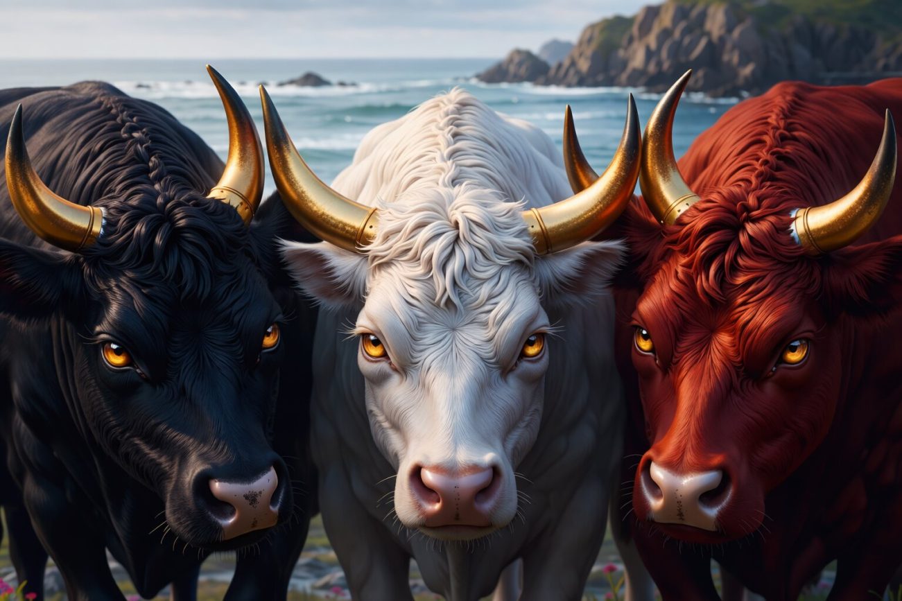 In the earliest age of Ireland, before grass grew or herds roamed, the island lay empty and barren. From the western sea came three cows, rising from the waves as if born from the ocean itself. They were sisters: Bó Find, white as light; Bó Ruadh, red as flame; and Bó Dhu, black as night.