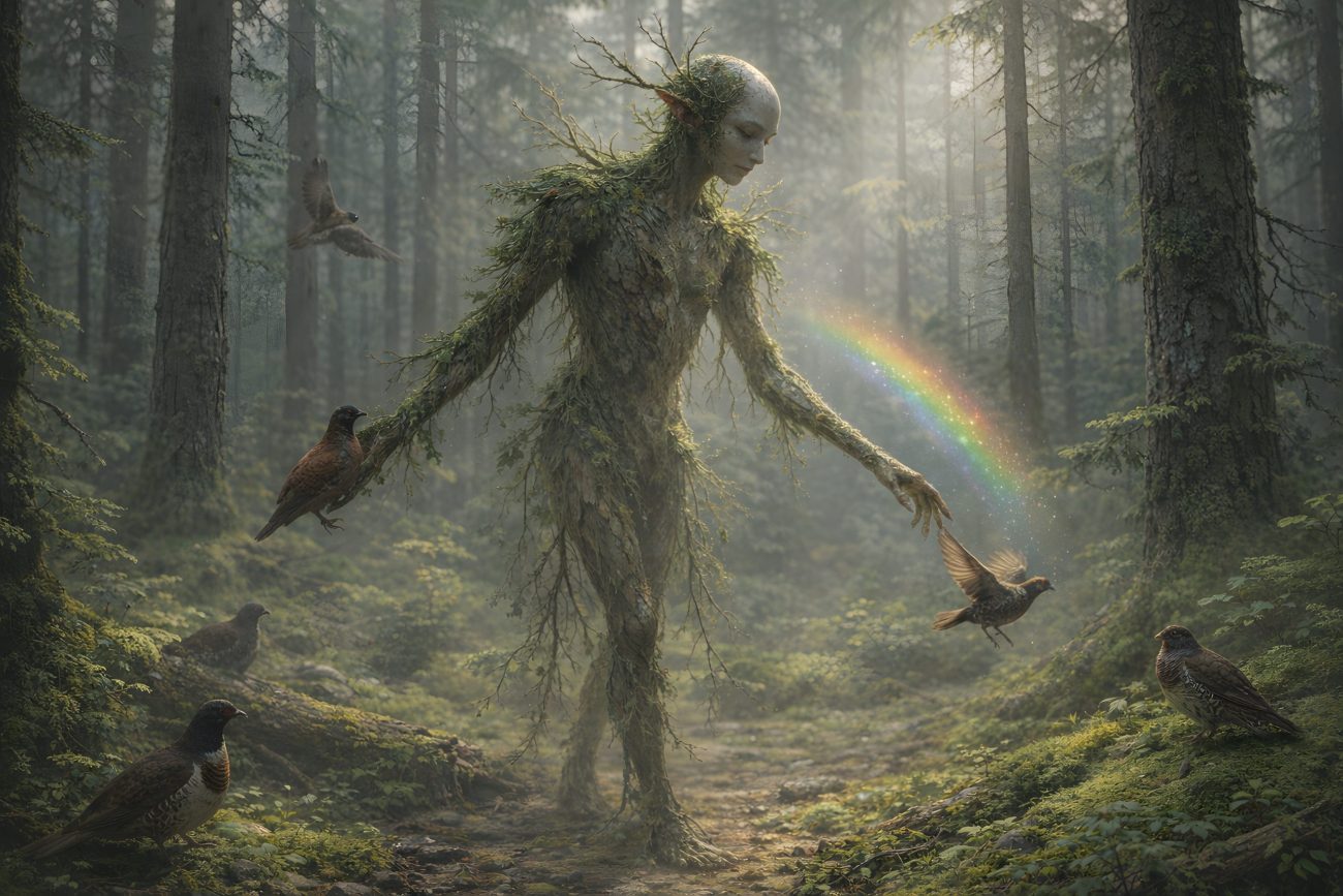 The name Kalenik comes from the Komi word kalkӧtny, meaning “to separate” or “to breed,” reflecting his specific task in the cycle of animal life. Kalenik does not hunt, punish, or mislead humans; instead, he quietly ensures that the rhythms of nature proceed correctly among the birds of the forest.