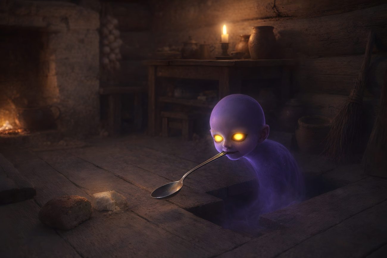 According to belief, stillborn or unbaptized children often remained close to the place where they were buried—frequently under the floor of the house, near the hut, or within the household space itself. Over time, such spirits could become domestic beings, lingering inside the home and wandering through it at night.