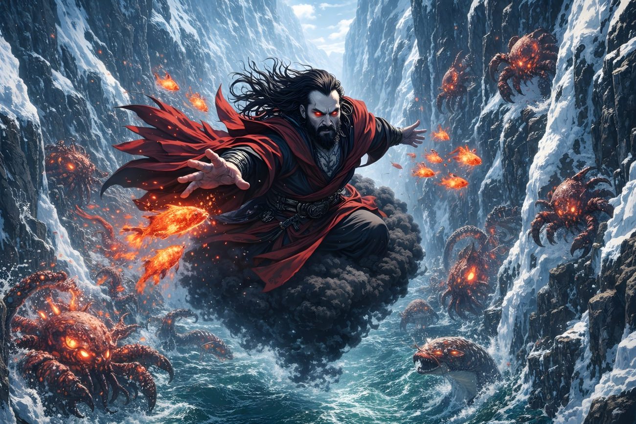 After the monster’s defeat, the youth married the princess. However, the witch-maiden soon sought revenge. She transformed into an eagle, attacked the youth, reclaimed King Solomon’s ring, and chained him inside a cave, intending to leave him there to die. Many years passed before the magician came to the king and revealed that the youth could still be found. Guided once again by birds, they located the cave and freed him. Though he was weak and emaciated, the magician nursed him back to health. The youth returned to his wife and lived in prosperity, but he never saw the ring again.