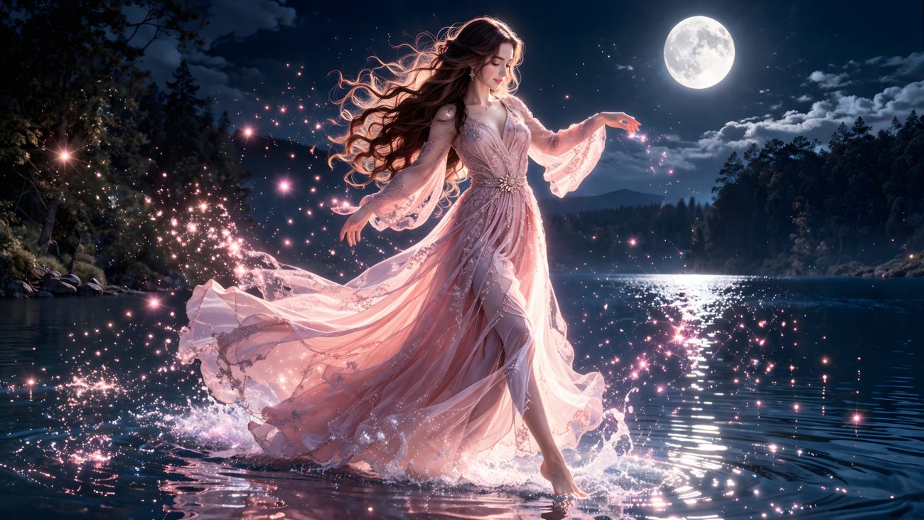 One of the most renowned among them dwelled in Lake Fontargent. On certain summer nights, when the moon aligned between the surrounding peaks, she would rise from the water wearing a long, flowing silk tunic. She moved silently across the lake’s surface, as if untouched by gravity, in complete stillness.