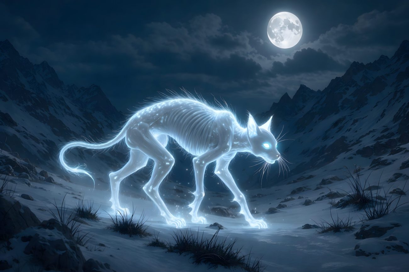 The Ghostly Cat represents a punishment tied to guilt, corruption, and unnatural transformation — a human reduced to an animal in life, and bound to that form even after death.