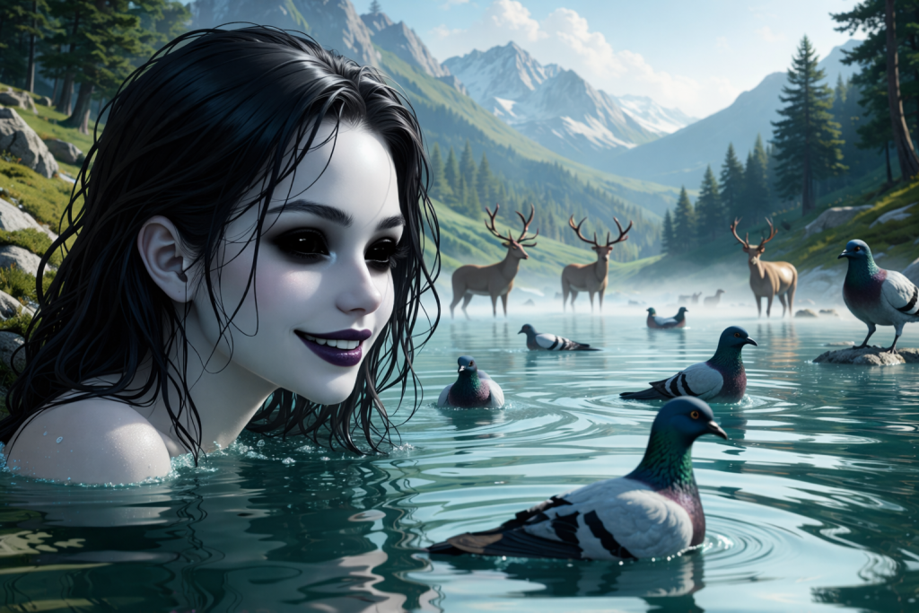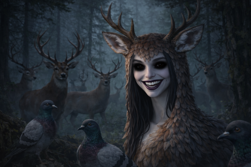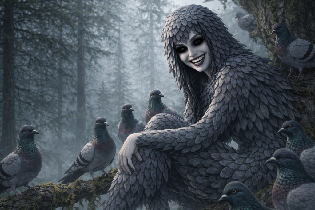 The Peri is a beautiful supernatural maiden, gentle by nature and radiant in form. She often appears as a pigeon or a deer, coming to ponds or rivers where she removes her animal skin and bathes as a human woman.