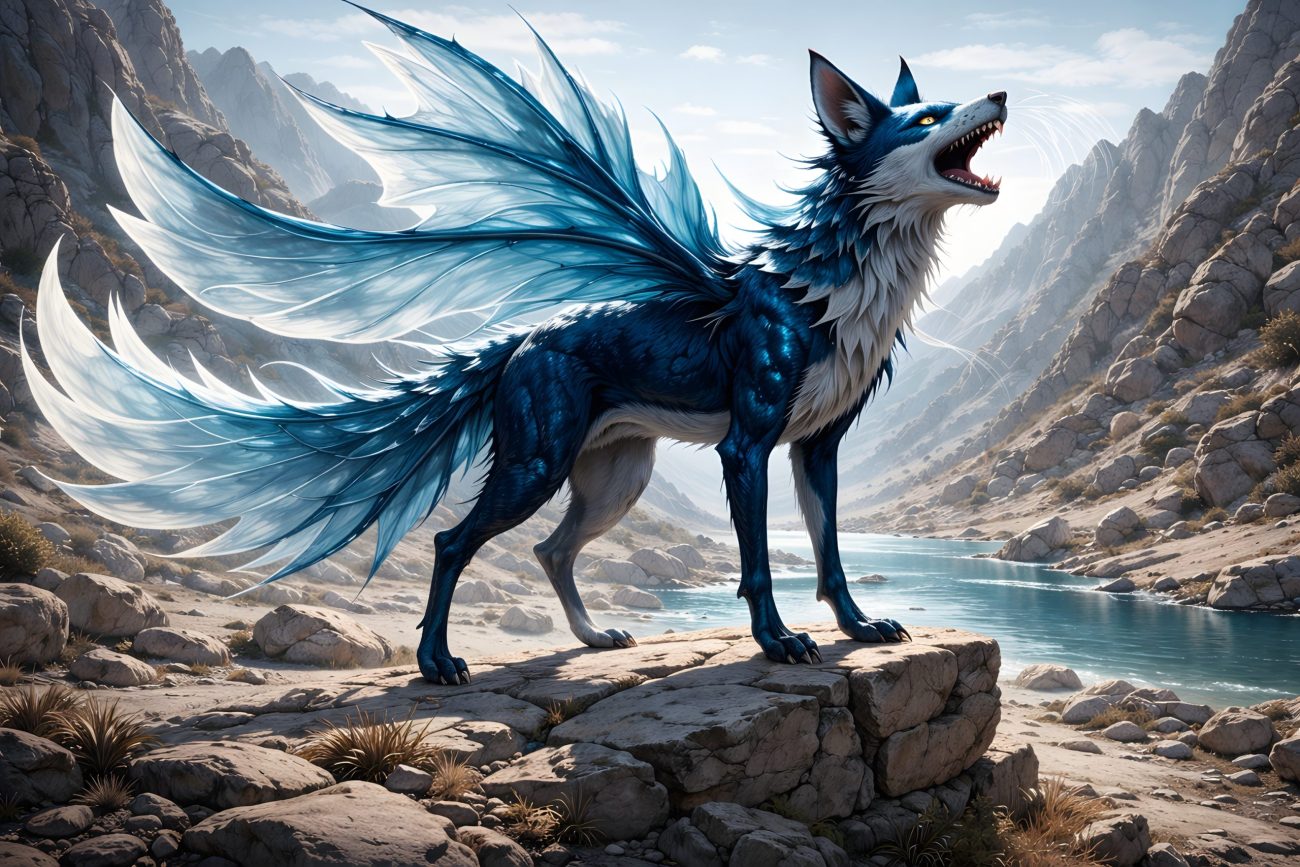 It was shaped like a fox, but its body was not entirely of the land. From its sides grew wings like those of a fish, strange and otherworldly, as though it belonged partly to the waters as well as the mountains. The creature dwelled in barren places where few trees grew, among blue waters and rocky slopes where great snakes also lived.