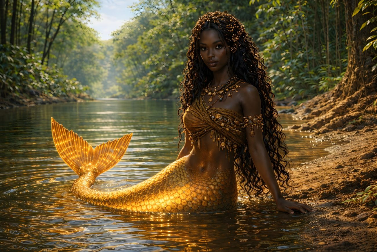 When the people of Central Africa were carried across the ocean, the Simbi were said to travel with them. In distant lands, the spirits were still believed to live in rivers and marshes. Among the Gullah Geechee people, one tale tells of a girl named Sukey who meets a mermaid called Mama Jo. The water spirit protects her and gives her gold, just as the Simbi were said to bless their followers in the old homeland.