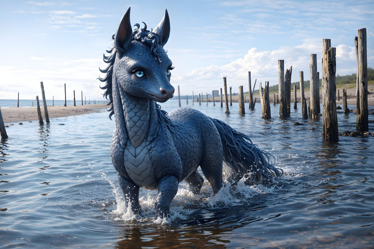 According to tradition, this horse possesses a striking but rarely witnessed appearance: it is said to have a dark or bluish body with a mane like black jet. It moves with unnatural speed, likened to a hawk in motion, and is accompanied by mist or fog as it travels.