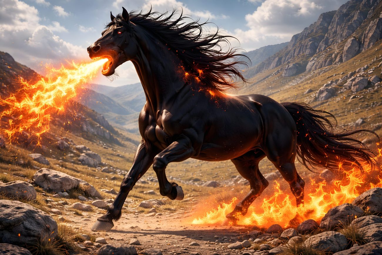 The horse serves as a divine instrument, assisting sacred forces in moments when direct intervention is required. It can arrive swiftly to aid followers or carry out the will of higher powers, often appearing only when needed and vanishing just as quickly.