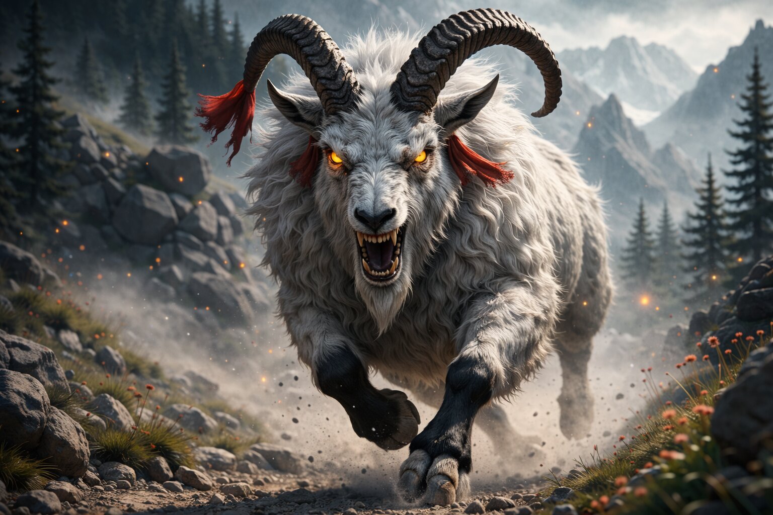 Without looking back, she fled with the boy down the mountain toward the village.