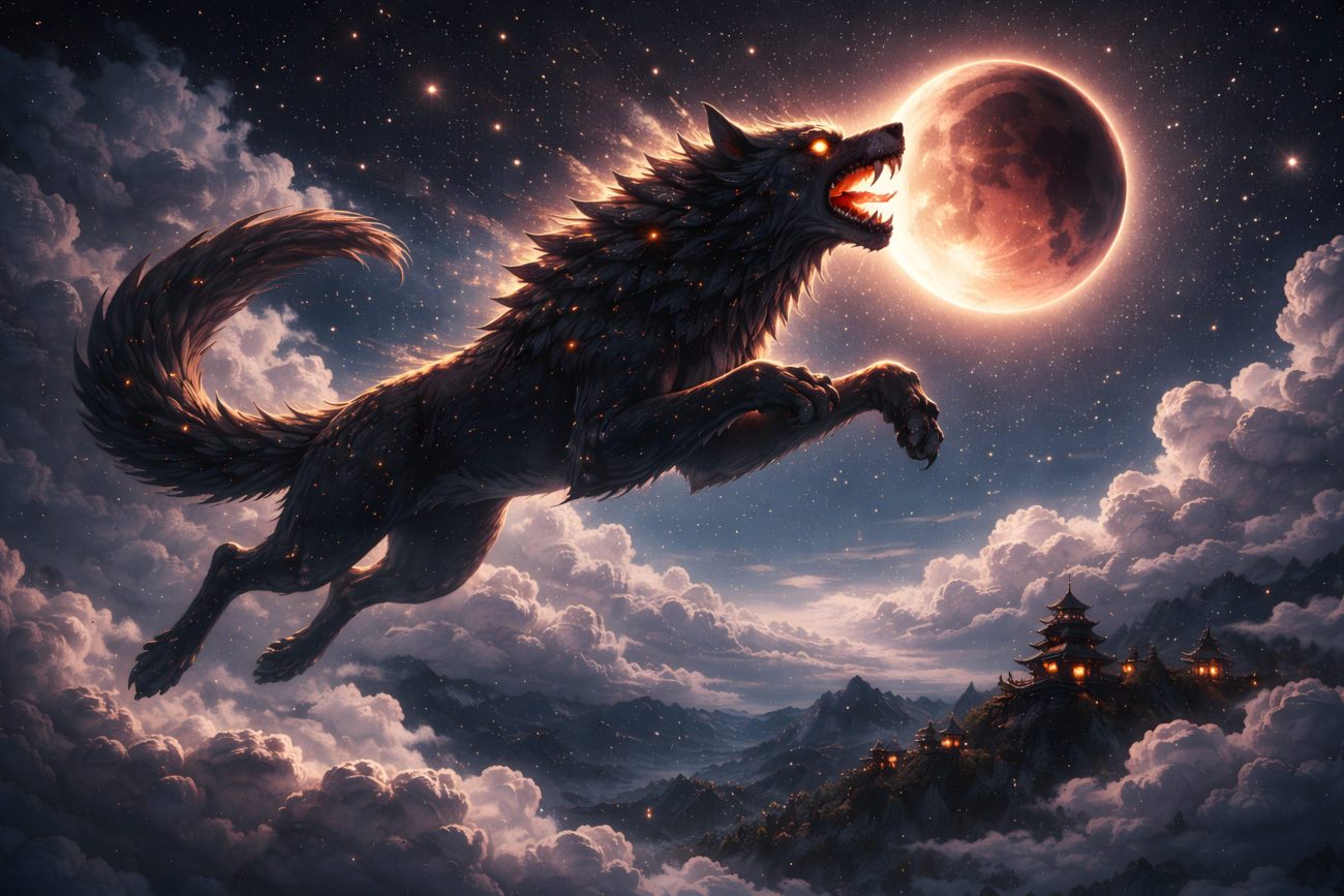 Thus Tiangou is remembered as both a devourer of the Moon and a guardian of Heaven — a celestial dog whose presence explains the darkening of the sky and whose power reaches across both myth and the stars.